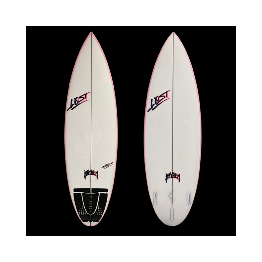 5'10 LOST RIPPER ROUND, grip SLATER, 3 plugs FCS2, des enfoncements d'usures