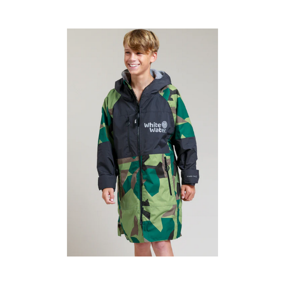 La White Water Hard Shell Robe est conçue avec une coupe ample et oversize, afin de vous permettre de vous changer facilement en dessous.